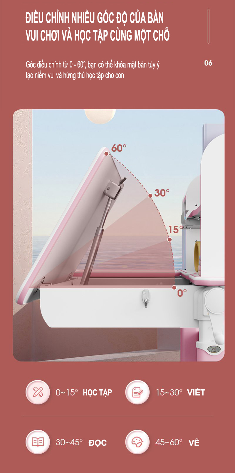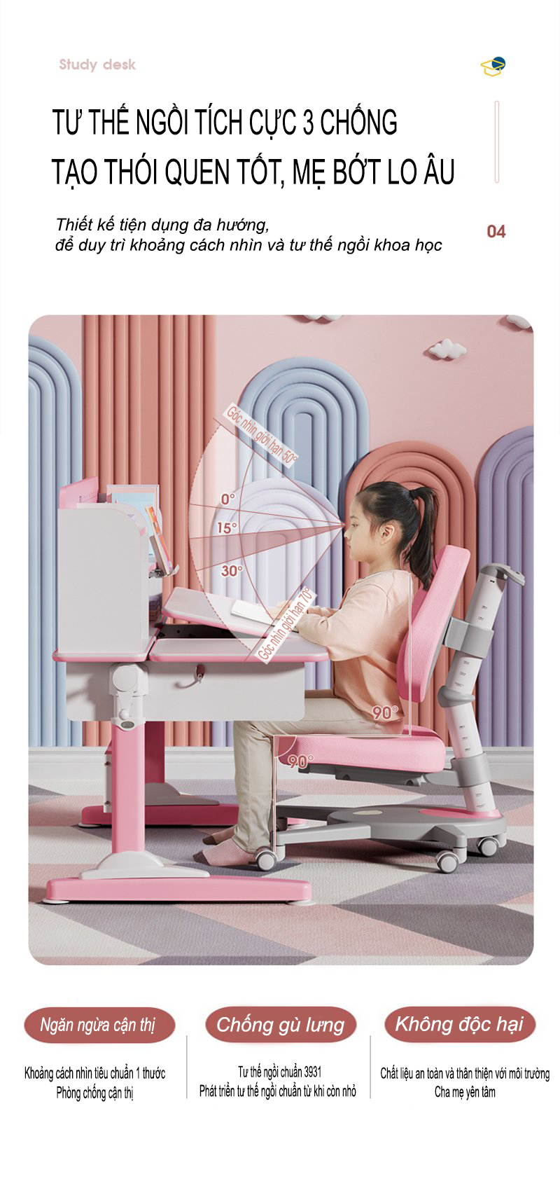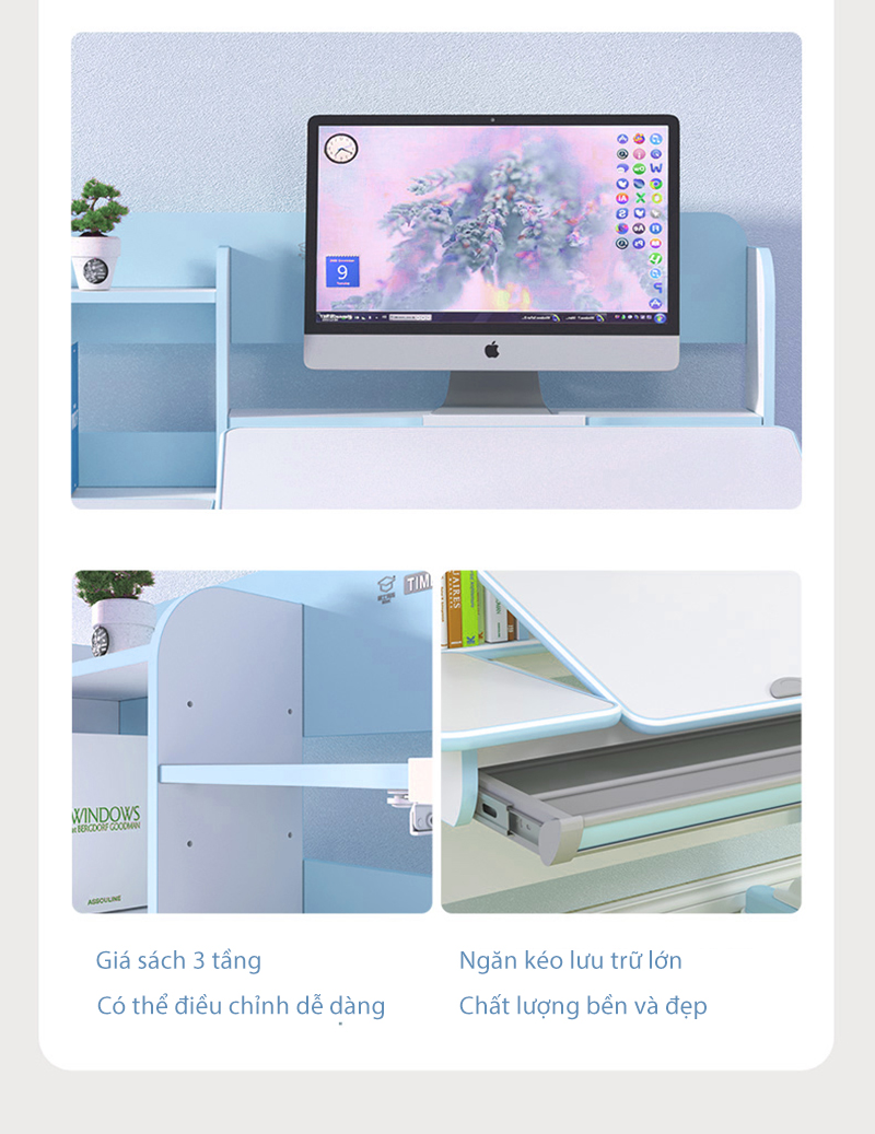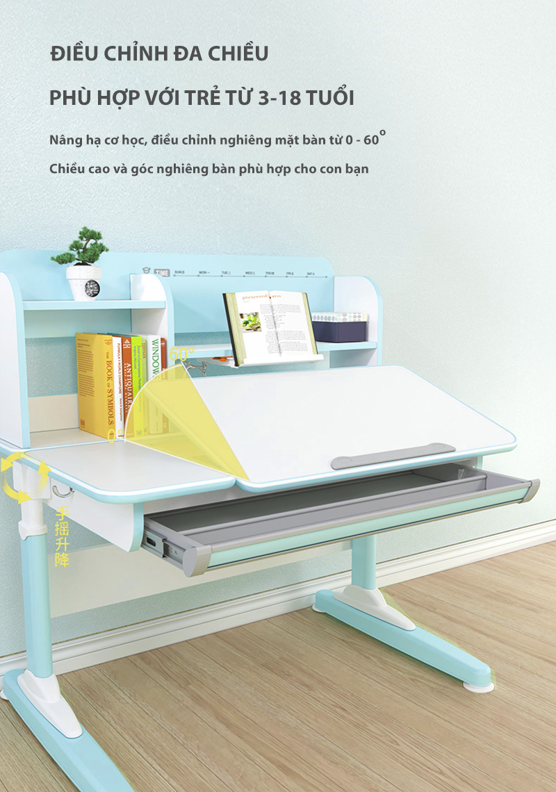 Bàn học chống gù chống cận giúp con có tư thế ngồi chuẩn, thư giãn, hứng thú học tập