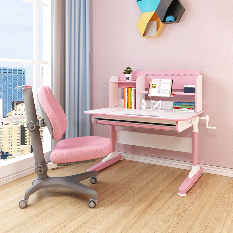 Bàn học thông minh nâng hạ chiều cao drz 10003 màu hồng và ghế chống gù cao cấp màu hồng