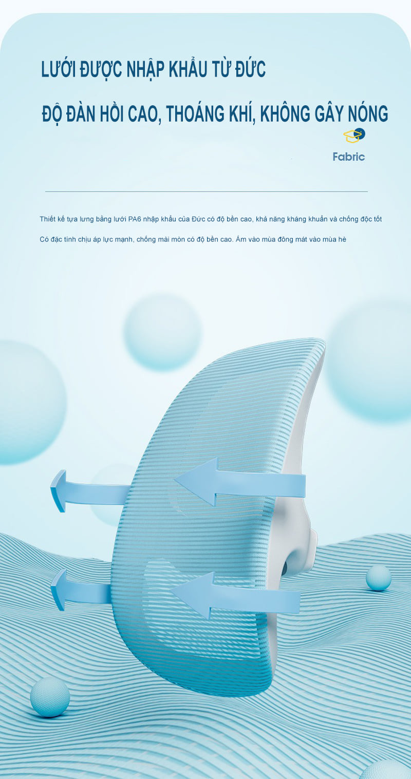 Chất liệu : Thép chống gỉ, nệm hàng không, nhựa ABS, tựa lưới cao cấp nhập khẩu từ Đức.