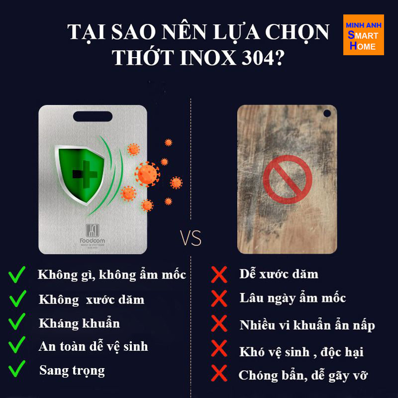 Trả lời : Xét về các yếu tố chính : chống gỉ, không nứt vỡ, không nấm mốc thì chiếc thớt 304 quá tốt.